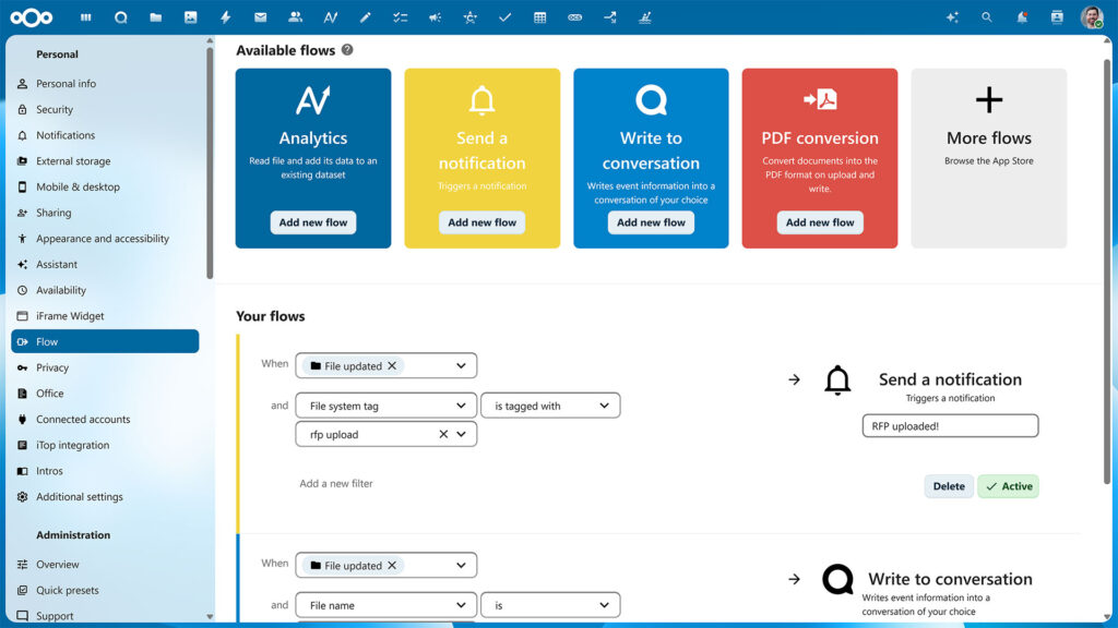 In settings where a firewall is needed between departments or organizations without impeding smooth and efficient collaboration, a separate Virtual Data Room can be set up. Nextcloud offers a wide range of unique features for VDR use and its on-premises nature offers unparalleled confidentiality and control.